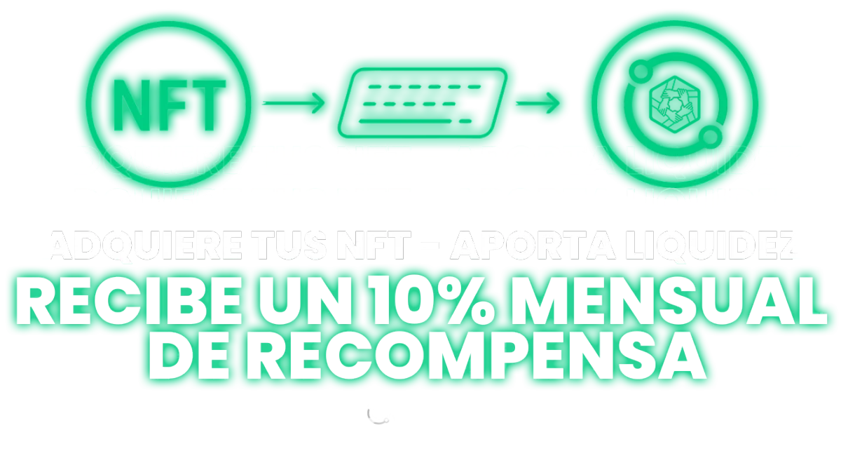 Comprando cualquiera de nuestros NFTs (o todos) accedes a un programa de recompensas que puede acelerarse con bonos de recomendación y generar recompensas adicionales.